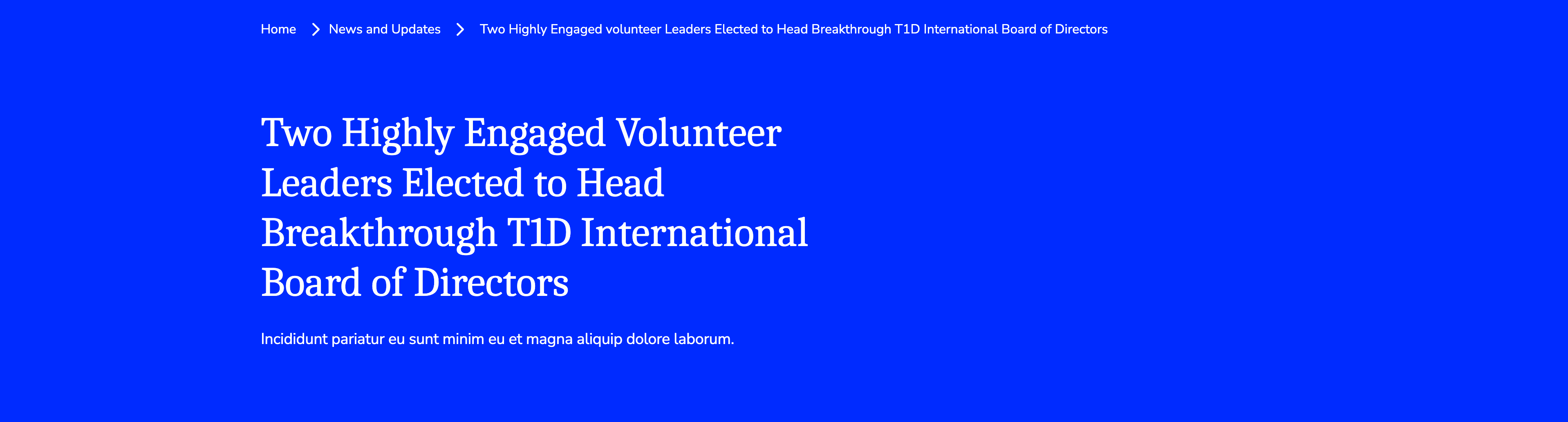 <h1 class="bt1d-page-header__title">Two Highly Engaged Volunteer Leaders Elected to Head Breakthrough T1D International Board of Directors</h1>